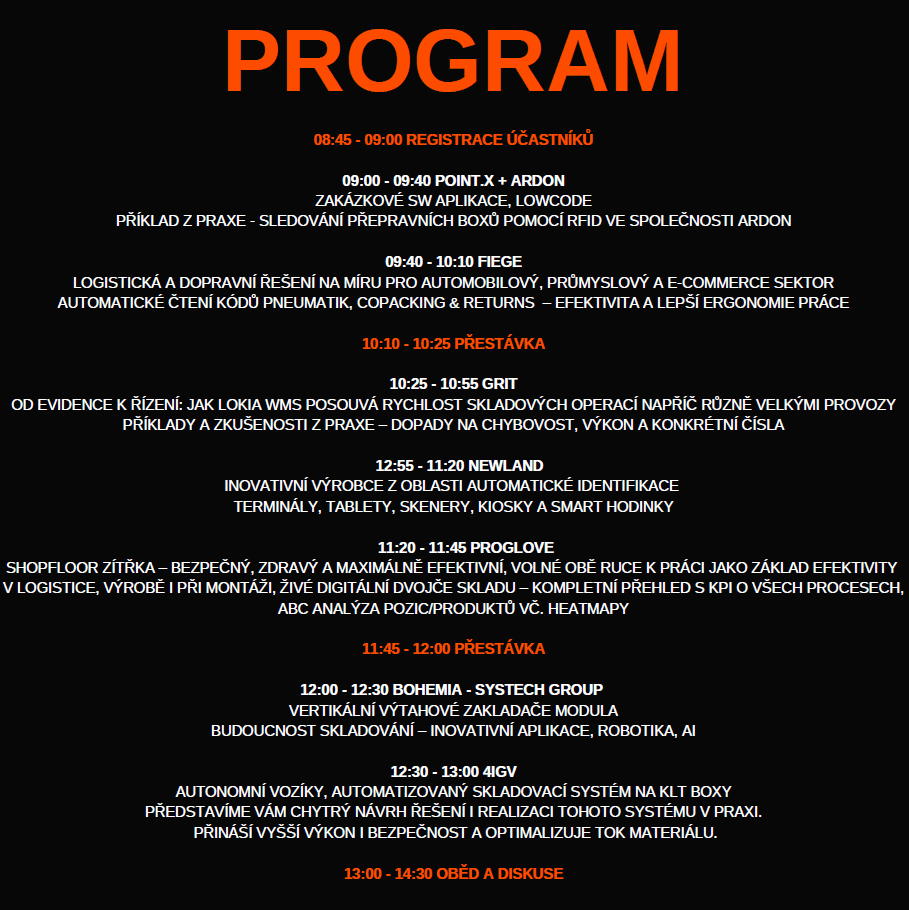 Prezentující si pro Vás připravili aktuální témata týkají se trendů v automatizaci logistiky a podělí se s Vámi o praktické zkušenosti.